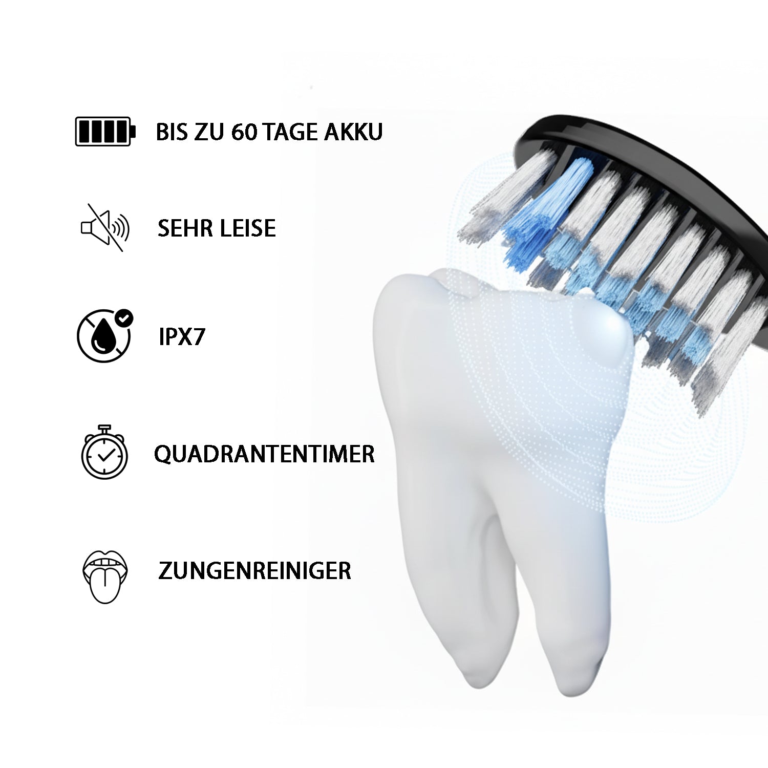 Während du manuell etwa 500 Bewegungen pro Minute schaffst, arbeitet die Schallzahnbürste mit zehntausenden Mikro-Schwingungen – und entfernt so Plaque und Verunreinigungen wesentlich gründlicher.