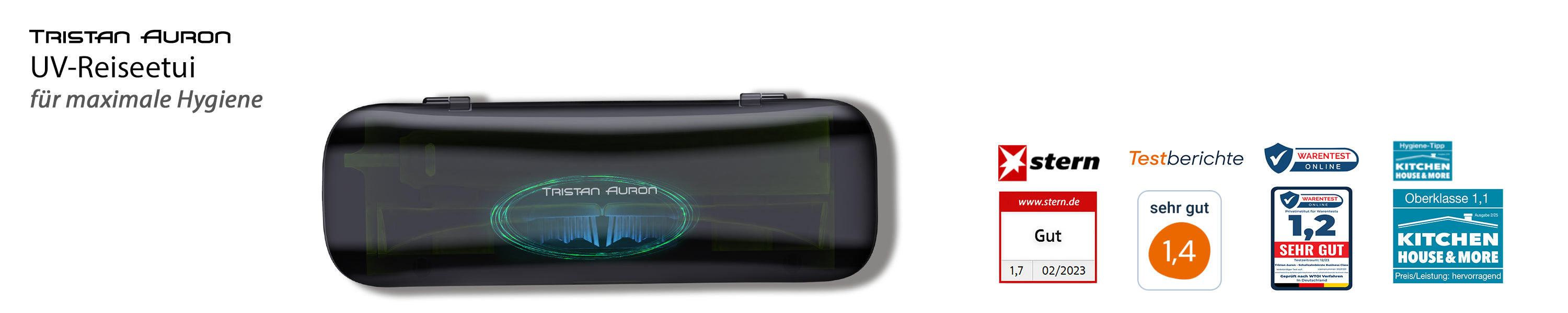 Stelle sicher, dass der Bürstenkopf vor der Verwendung sauber und leicht getrocknet ist. Platziere ihn korrekt im UV Reiseetui, damit die UV-Desinfektion optimal wirken kann. Reinige das Etui bei Bedarf mit einem weichen, trockenen oder leicht feuchten Tuch. Verwende keine aggressiven Reinigungsmittel und tauche das Etui nicht in Wasser. So bleibt dein Tristan Auron Reiseetui hygienisch, sicher und jederzeit einsatzbereit – ideal für unterwegs.