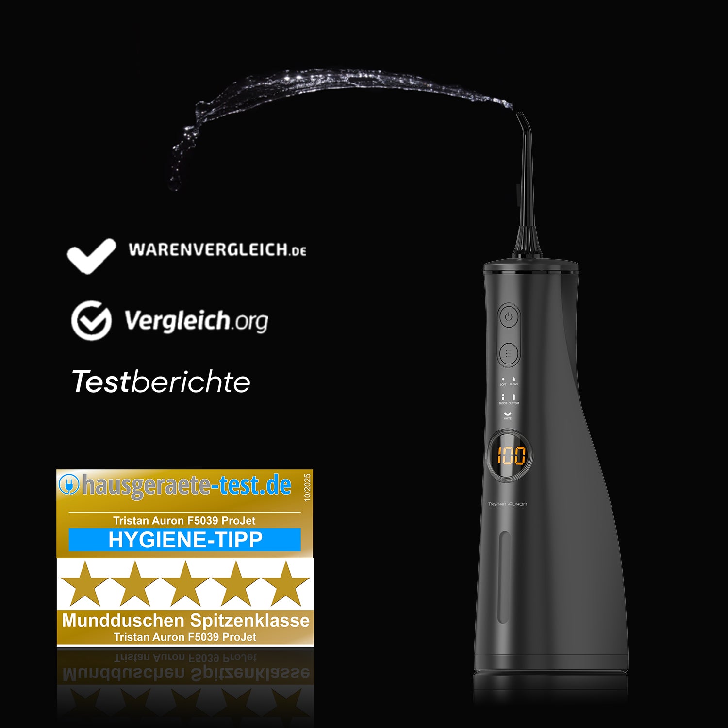 Unsere Munddusche überzeugt in führenden Vergleichsportalen durch starke Reinigungsleistung, hochwertige Verarbeitung und hohe Benutzerfreundlichkeit.