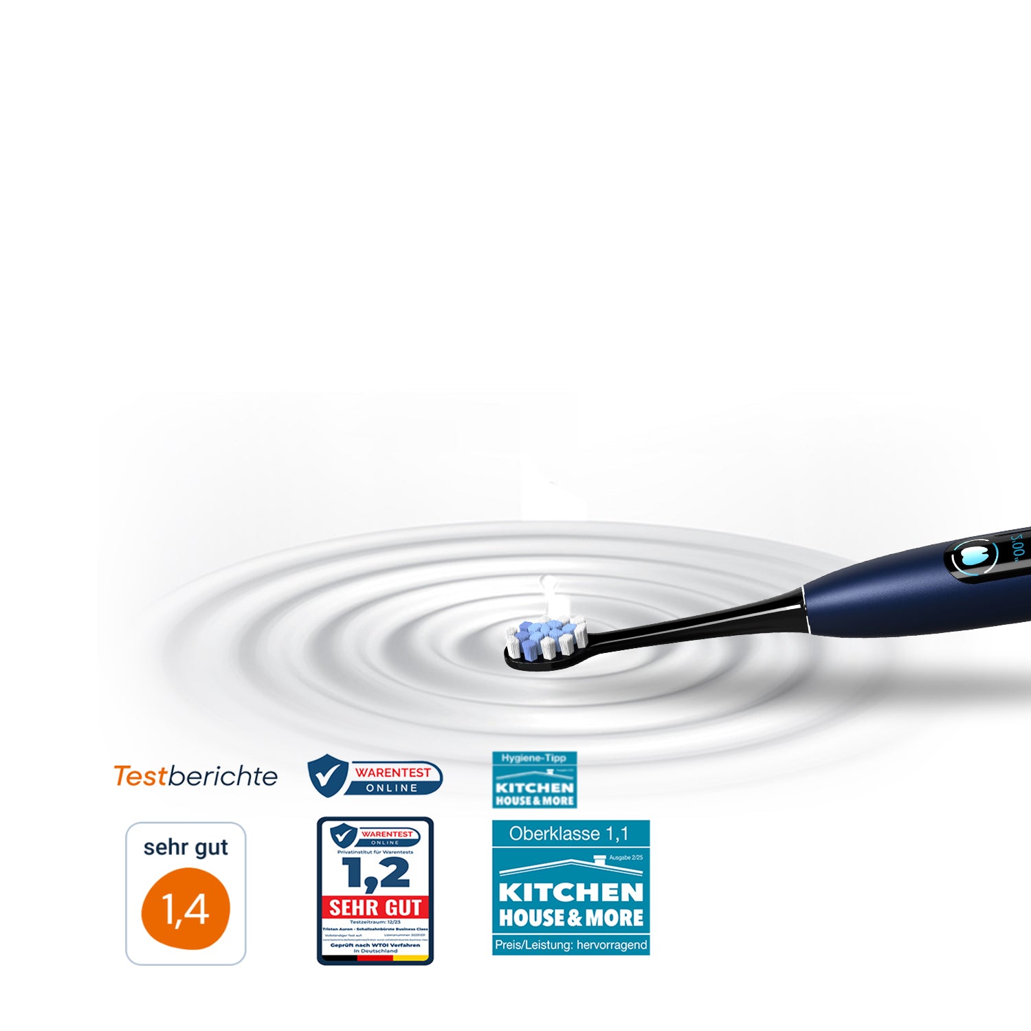 Die Schalltechnologie deiner Zahnbürste entfernt bis zu 2,5-mal mehr Plaque als eine Handzahnbürste. Sie erreicht selbst schwer zugängliche Stellen, schützt das Zahnfleisch und sorgt für ein spürbar gründlicheres Reinigungserlebnis und ein strahlendes Lächeln.